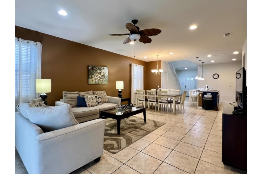 Windsor at Westside - Kissimmee, Florida is an upscale gated community located just 10 minutes from Walt Disney World. This luxury home sits nestled just outside of Orlando, Florida, and has quickly become one of the most desired locations in the Orlando area. During your stay, you will enjoy this well-appointed home that has been designed and decorated to provide you and your family with an abundance of luxury amenities and leaves you well-equipped to vacation with all the usual items you would expect to find at home. Windsor at Westside is only a 30-minute drive from the Orlando International Airport and is situated central to all of Orlando’s famous attractions. This spacious 7-bedroom holiday villa can comfortably accommodate a larger family or group of up to 14 people.